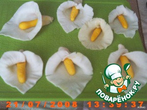 • Заготовка на украшения: из марципана делаем каллы, украшаем верх, посыпаем блеском и бусинками.