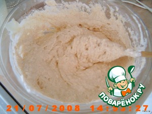 • Затем всыпать муку, сухари, желтковую массу во взбитый белок. Мешаем деревянной ложкой.