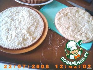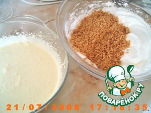 • Делаем ореховый корж, все то же самое с яйцами, только вместо сухарей орехи