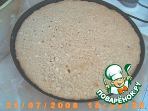 • Смазать лист маслом, выложить тесто и поставить выпекать при t=180* 15-20 мин.