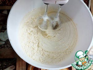 Всыпаем муку и разрыхлитель, продолжаем взбивать