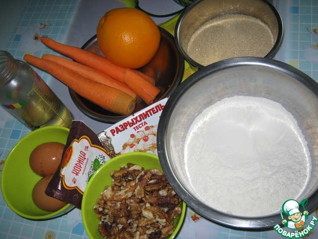 Ингредиенты для «Пирог с морковью и грецкими орехами»: