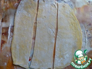 Защипнуть концы, чтобы не раскрутилось, и слегка примять скалкой. -