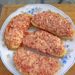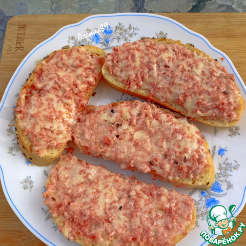- Багет (10 ломтиков. Можно взять тостовый хлеб или обыкновенный батон) — 10 шт
