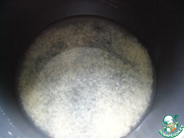Сварить рис. Промытый в воде рис положить в чашу мультиварки, залить водой. Установить режим"Гречка".