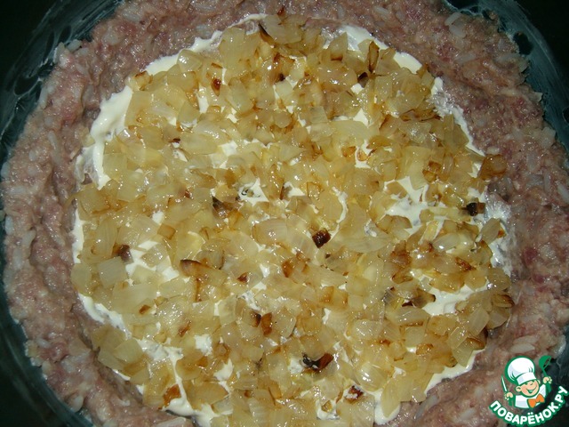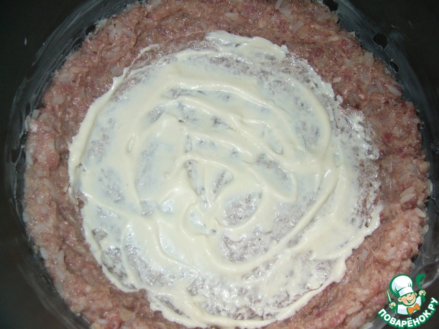 Выложить фарш в чашу мультиварки, смазанную слив. маслом, делая бортики 2-3 см