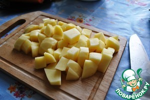 Спустя 30минут вынимаем из бульона индейку и засыпаем картошку и морковные сердечки