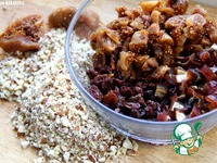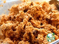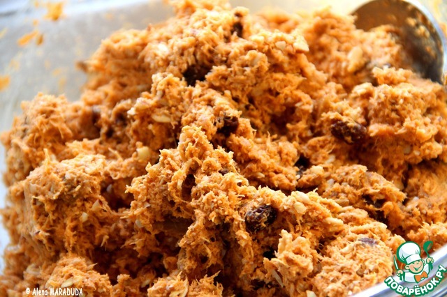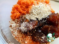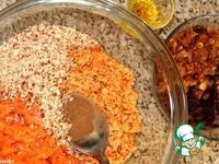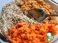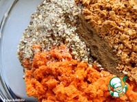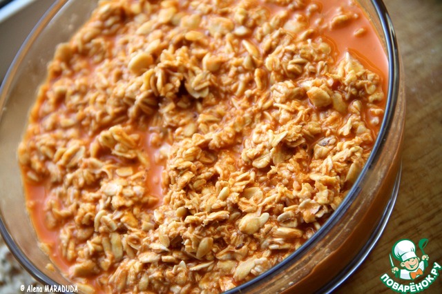 Сначала подготавливаем основу теста: овсянку с соком, жмых от моркови, масло льняное, орехи.