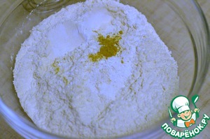 3. Муку просеять, смешать с разрыхлителем, солью и имбирем.