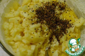 5. В тесто ввести аккуратно груши и кунжут, подсушенный на сухой сковороде.