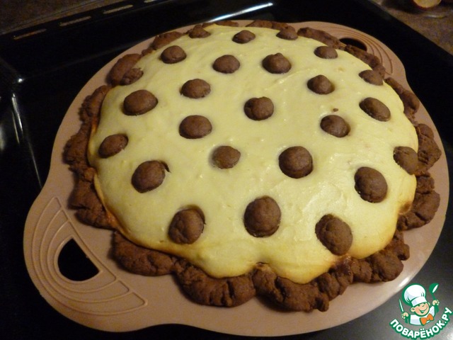 Вылить начинку на тесто. Оставшееся тесто скатать маленькими шариками и разложить по пирогу. Готовить на режиме "Выпечка" 1ч 25 минут.
