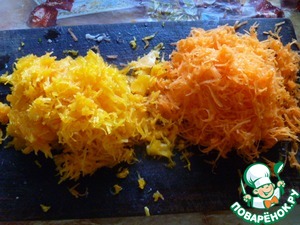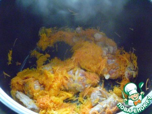 Затем добавить тыкву и морковь, обжарить до мягкости.