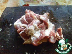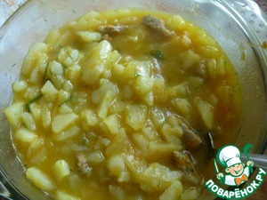 Здесь снова подоспела моя помощница и мы добавили в картошку вареное мясо перекрученное на мясорубку... Что совсем делать не обязательно, но очень вкусно...