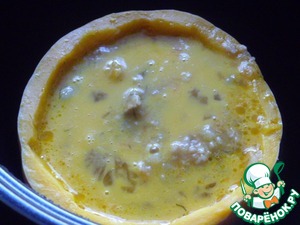 • Через 30 минут выливаем сверху взбитое с щепоткой соли яйцо и посыпать укропом.