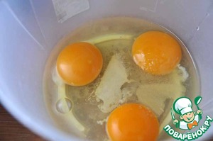Яйца взбиваем миксером с сахаром и солью. -