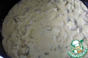 Можно брать любые грибы (свежие, замороженные), у меня замороженные резаные шампиньоны.