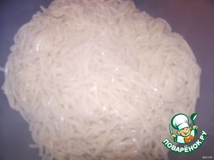 Варить до готовности. Готовую лапшу промыть под холодной водой, чтоб не слиплась, бросить кусочек масла, перемешать. -
