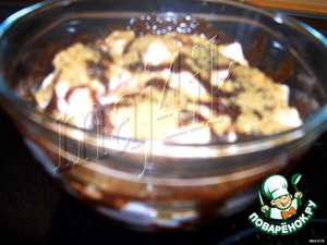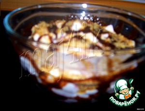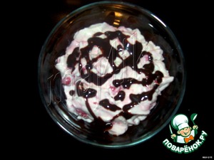 Налить на стенки и дно креманки шоколадный соус.