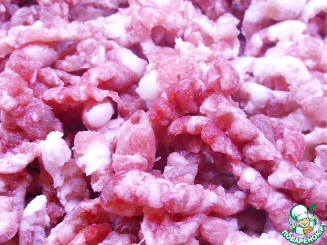 Достаём мясо и сало из холодильника. Сало промываем водой - удаляем лишнюю соль. Теперь следует приготовить фарш, причём желательно, чтобы решётка мясорубки имела диаметр 6 мм или больше. Мясо смешиваем с салом и слегка подмораживаем в морозильнике. Это нужно для того, чтобы мясорубка резала мясо, а не "жевала".