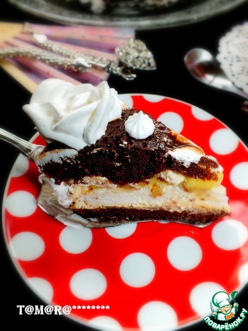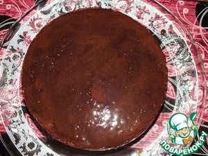 Закрываем вторым коржом и сверху поливаем глазурью. Можете сделать свою любимую глазурь. Я делала быструю глазурь - 50 гр сахарной пудры смешала с 2 ст. л. молока, 1 ст. л. растопленного сливочного масла, 1,5 ст. л. какао.