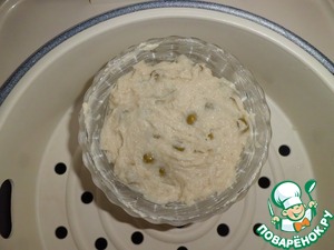 Раскладываем массу в, смазанные сливочным маслом, формочки (у меня это вот такие розеточки). Ставим в мультиварку, в чашу для приготовления на пару. Выбираем режим "приготовление на пару", включаем на 25 минут. С выбором времени стоит ориентироваться на мощность и особенности вашей мультиварки. У меня отсчет времени идет с момента включения (я знаю, что есть такие аппараты, где время отсчитывается с момента закипания).