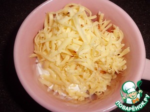 • Добавляем сыр (половину от общей массы), перемешиваем и отправляем на час в холодильник.