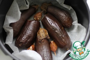 Положить баклажаны и нечищеный чеснок. Поставить программу выпечка, тушение или запеканка на 60 мин.