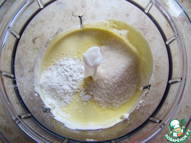 Добавить 1 ст л кукурузного крахмала (можно заменить 1,5 ст л ванильного пудинга или смеси творопыш), 50 г сахара, перемешать.