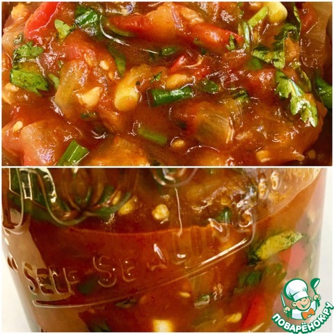 Снимаем готовый соус с плиты, даем остыть и добавляем мелко порезанную кинзу и зеленый лук. Подаем соус к любым мясным блюдам. -
