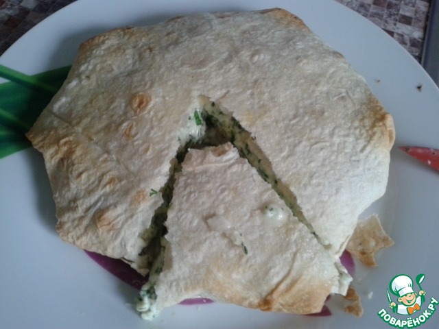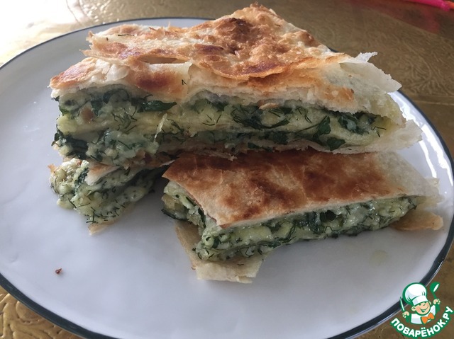 Вместо брынзы у меня творог и из зелени укроп и черемша.