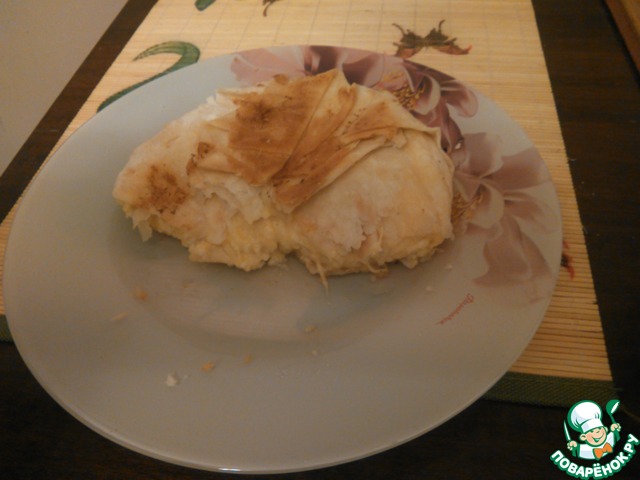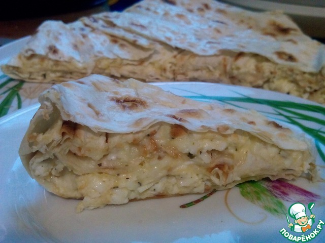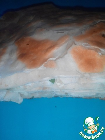 Закрываем краями нижнего лаваша, не допуская дырок.