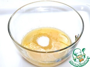 • Готовим тесто. Кладём в миску размягчённое (но не подтаявшее) масло, желток одного яйца (белок оставим для начинки) и сахарную пудру.