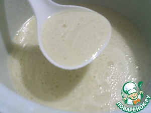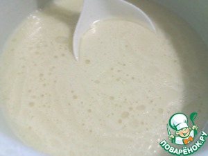 Просеять в тесто муку, размешать до исчезновения комочков.