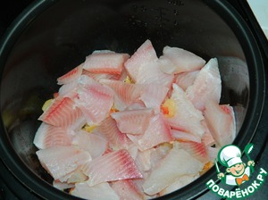 Добавить нарезанную на кусочки рыбу. Включить режим "Тушение" 30 минут.