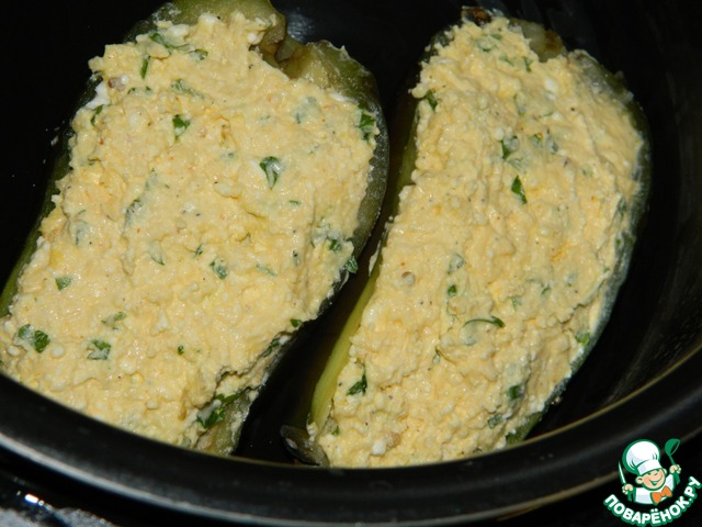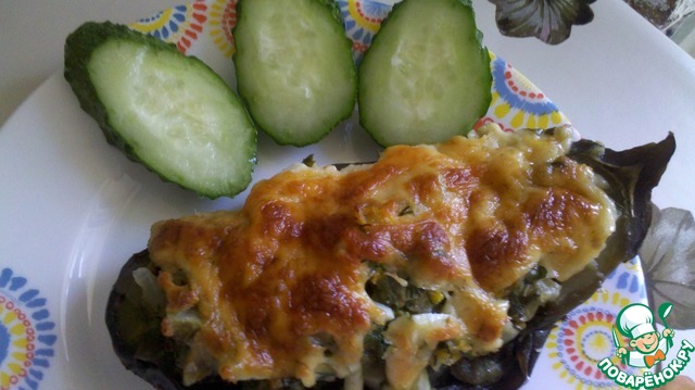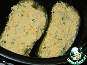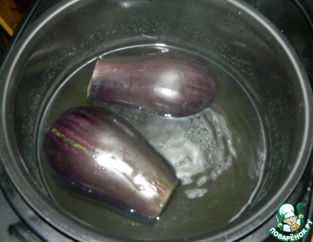 Баклажаны разрезать вдоль. Положить в кипящую соленую воду на пару минут. Остудить. Ложкой выбрать в баклажане канавку.