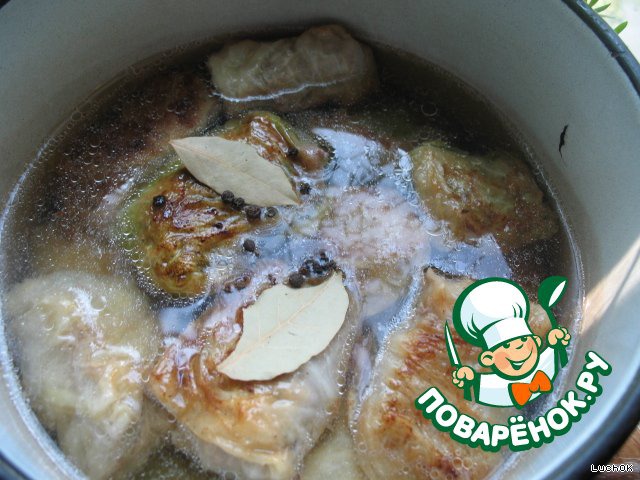 Наливаем водички так, чтобы вода только прикрыла их. Бросаем несколько горошин перца и лавровый лист