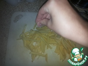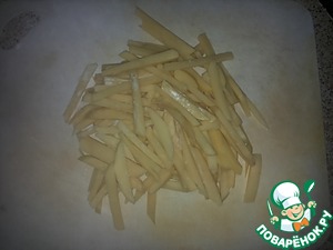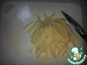 Бывает картошка фри (то есть толстая и длинная картошка), а картошка пай - это маленькая и короткая, это что-то среднее - не совсем картошка фри и не картошка пай; это, конечно, очень легко готовить, но я решила показать свой способ.