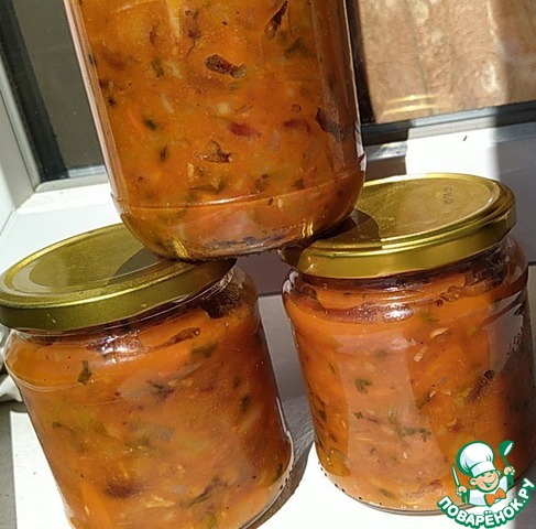 Спасибо за рецепт! Получилось 14 с половиной баночек по 200 что ли мл, которые как от икры мойвы в соусе