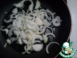 Лук порезать полукольцами и пожарить на масле до прозрачности