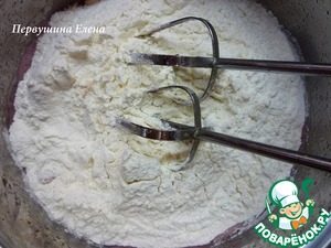 Муку просеять и ввести в тесто вместе с разрыхлителем.