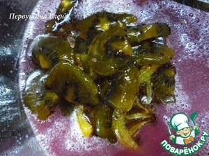 Положить в тесто варенье (у меня из киви) и аккуратно перемешать ложкой.