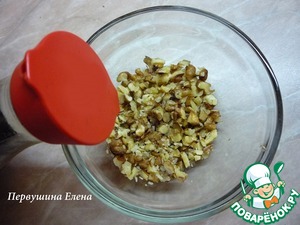 Пока вермишель настаиваться, сделаем заправку: в орехи нальем соевый соус, перемешаем и оставим впитываться.