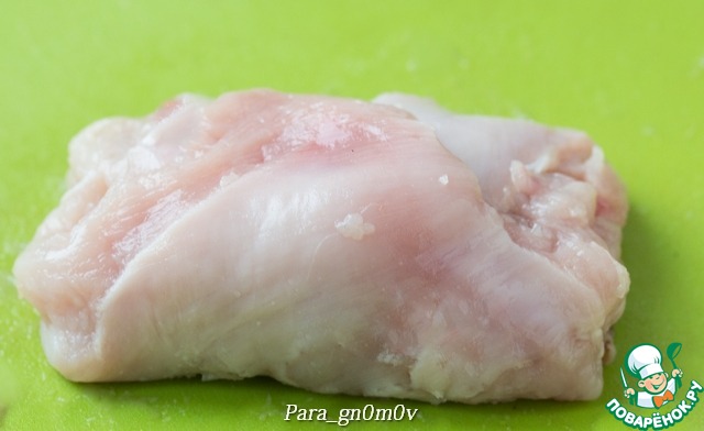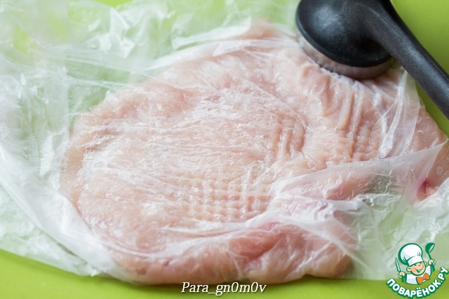 2. Филе промыть и отбить с двух сторон. Я делаю это в полиэтиленовом мешке, чтобы мелкие кусочки филе не разлетались по всей кухне.