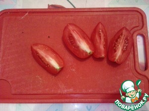 Помидоры разрезаем на 4 части