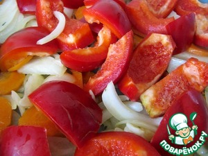 Выложить нарезанный перец, жарить еще 3 минуты.