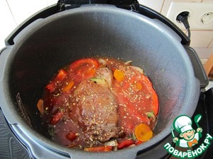 Влить протертые томаты, посолить, добавить специи. Включить режим "Тушение" на 1 час.