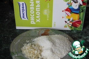 Перемалываем рисовые хлопья в кофемолке, иначе они будут чувствоваться в готовом печенье твёрдыми частичками.