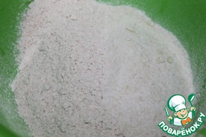 К просеянной муке добавляем перемолотые рисовые хлопья, соду и соль, перемешать.