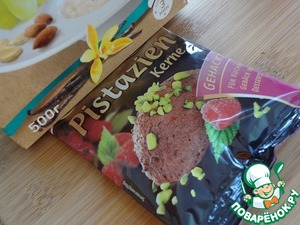 Пока завариваются хлопья, почистим и порубим фисташки. Для того, чтобы избавиться от "пленки" на орехах их замачивают в теплой воде минут на 10, а затем очищают. Я воспользовалась уже готовыми, чищенными и рублеными фисташками. Ни разу таких не видела в магазине. Это подарок Нины barska. Нинуль, СПАСИБО!!!