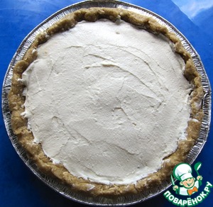 Для приготовления посыпки для пирога смешать хлопья (1/2 стакана), 3 ст ложки коричневого сахара и 50 г мягкого масла, выложить равномерным слоем сверху творожной начинки, посыпать кокосовыми кранчами. Выпекать пирог в предварительно разогретой до 180°С духовке около 40 минут до золотистой корочки. Перед подачей полить медом.
